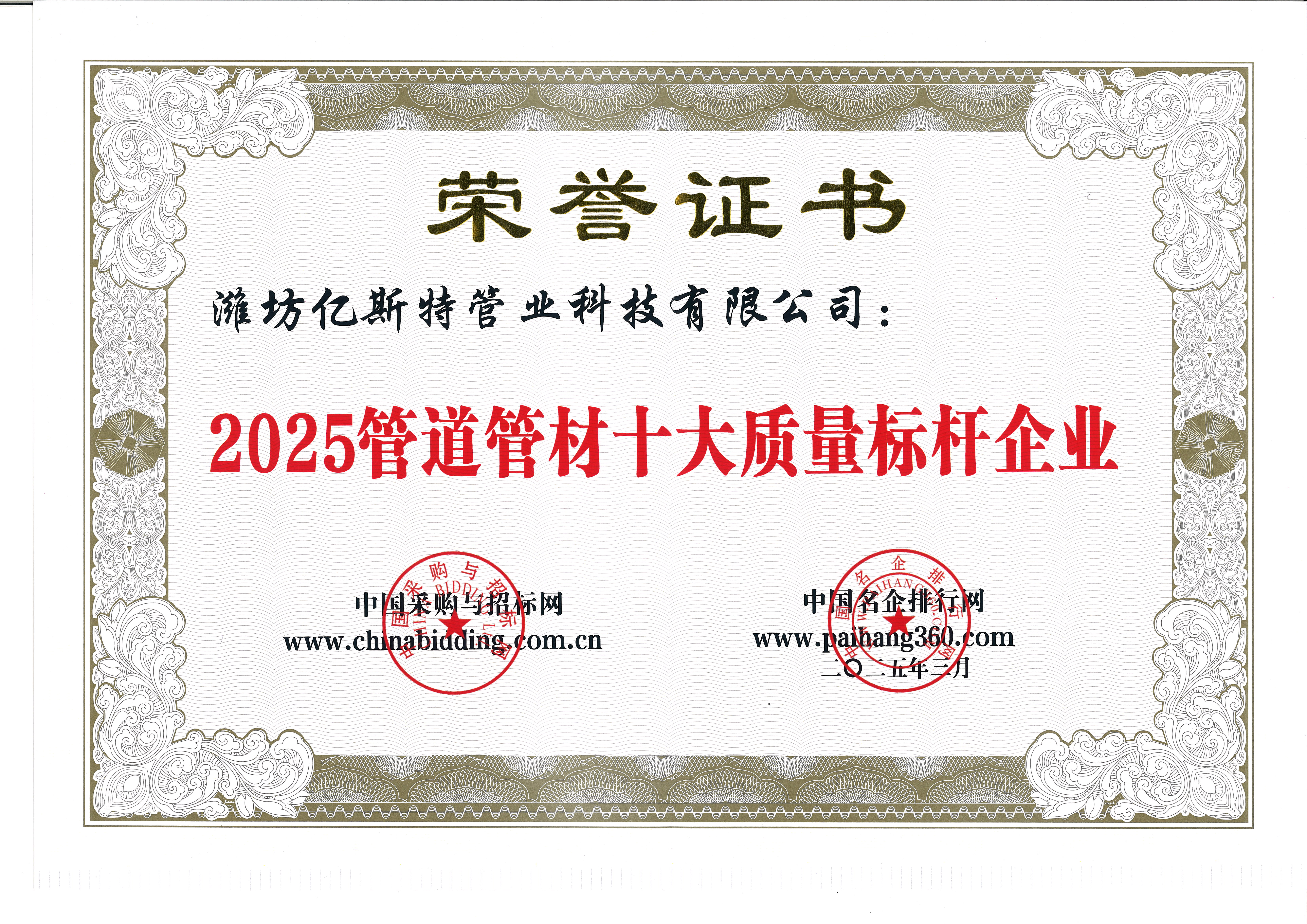 濰坊億斯特管業(yè)科技有限公司立足濰坊,輻射全球,產(chǎn)品已出口至30多個(gè)國家和地區。四項榮譽(yù)的取得,源于公司對“每一米管道都是承諾”的堅守。未來(lái),公司將加速布局新能源配套管材、高耐腐蝕管道、智慧水務(wù)系統等新興領(lǐng)域,為全球基建提供更安全、綠色的解決方案。